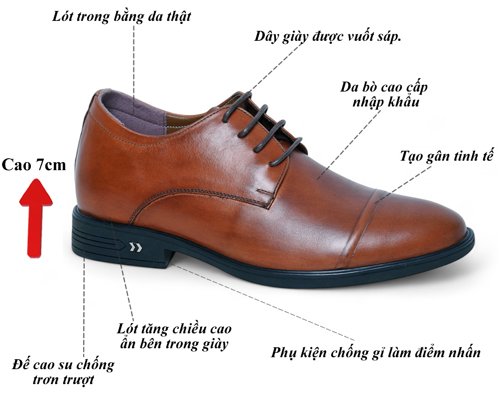 Giày tây nam cao 7cm da thật
