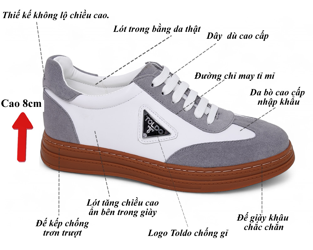 Giày thể thao cao 8cm da mềm