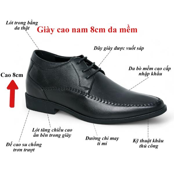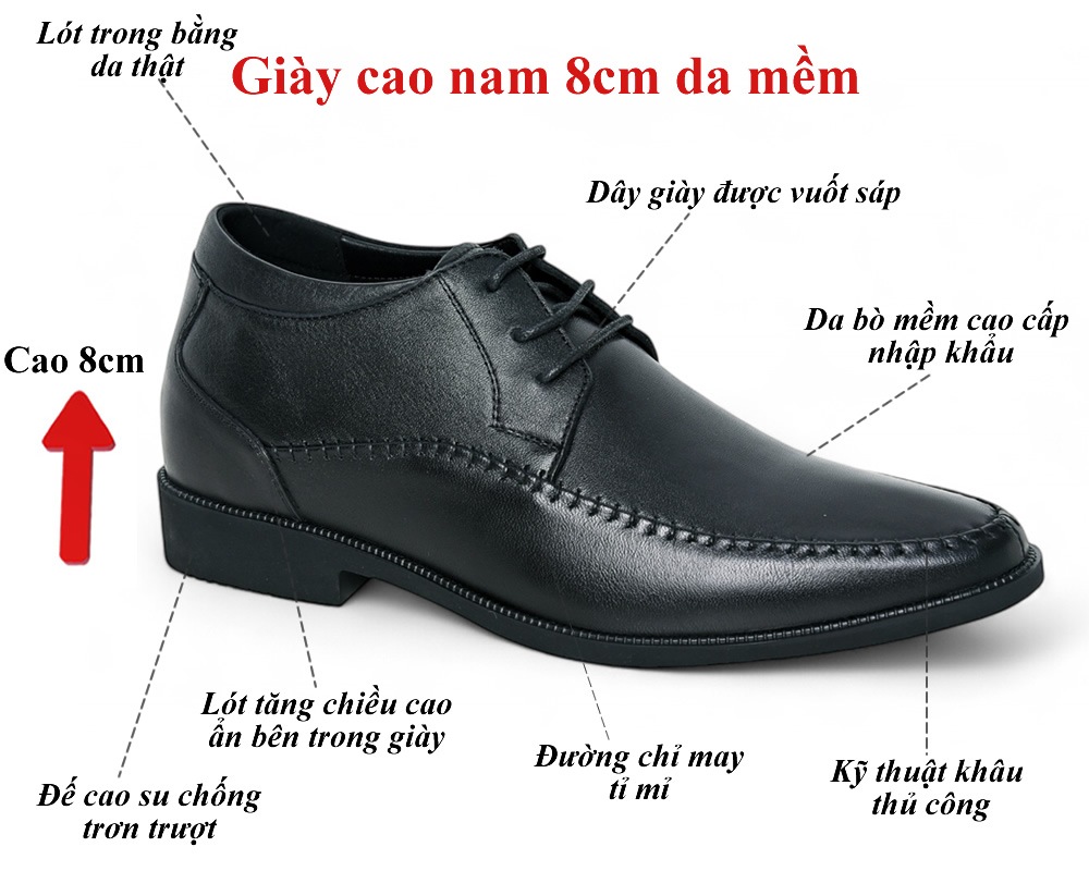 Giày cao 8cm mũi khâu da mềm 8