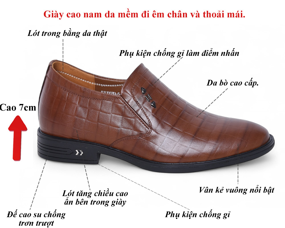 Giày cao nam 7cm nâu sần 7