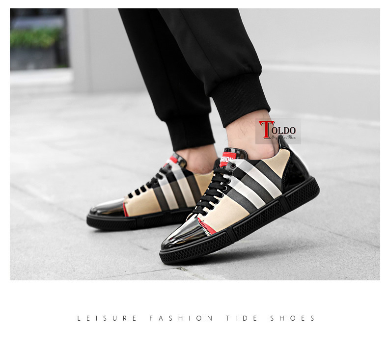 Giày cao nam phối da kẻ 1