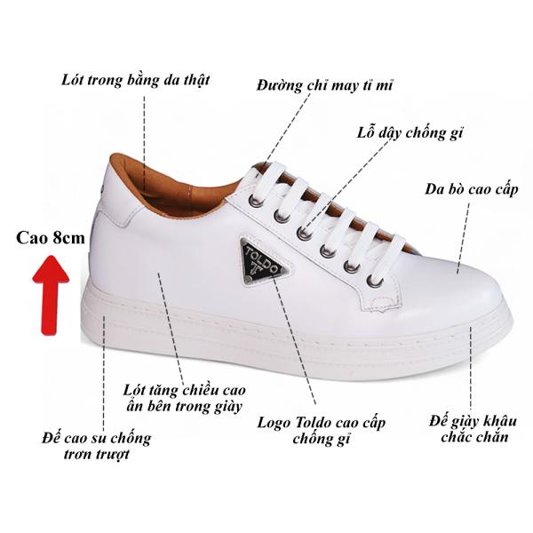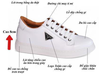 Giày cao thể thao 8cm cho nam màu trắng 8