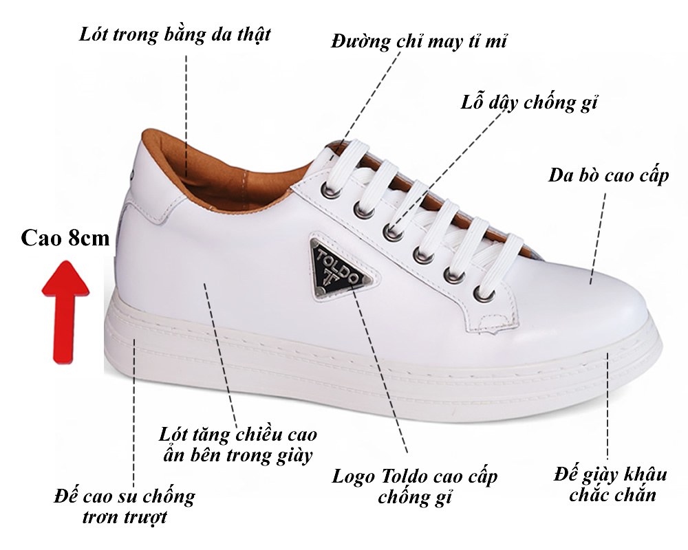 Giày cao 8cm thể thao da thật