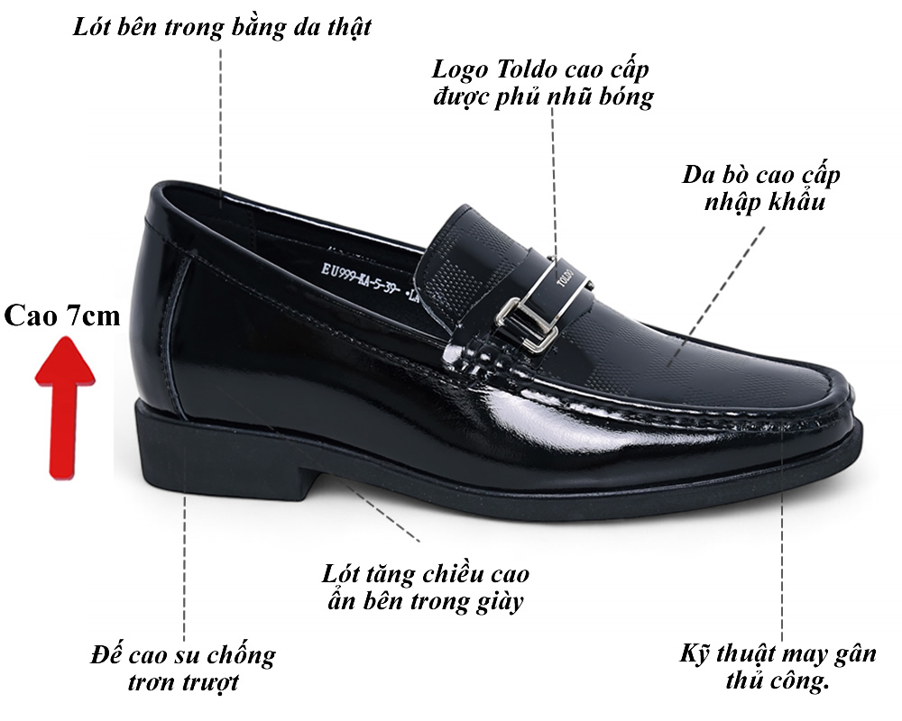 Giày cao 7cm da bóng cao cấp
