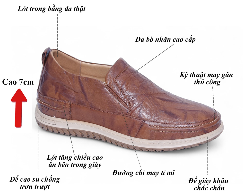 Giày nam tăng 7cm chiều cao da bò thật 7