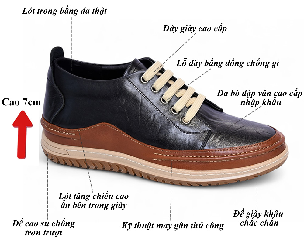 Giày cao nam 7cm da thật đế khâu