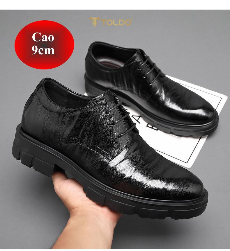 Mẫu giày cao nam 9cm thiết kế tinh tế, sử dụng giày da bò cao cấp nhập khẩu, mang đến sự bền bỉ và thời thượng. Phần đế chắc chắn giúp tăng chiều cao 9cm một cách tự nhiên, tạo sự tự tin khi đi làm, dự tiệc hay dạo phố. Đế giày chống trơn trượt, lớp lót êm ái giúp di chuyển thoải mái cả ngày. Sự lựa chọn hoàn hảo cho quý ông muốn nâng tầm phong cách!
