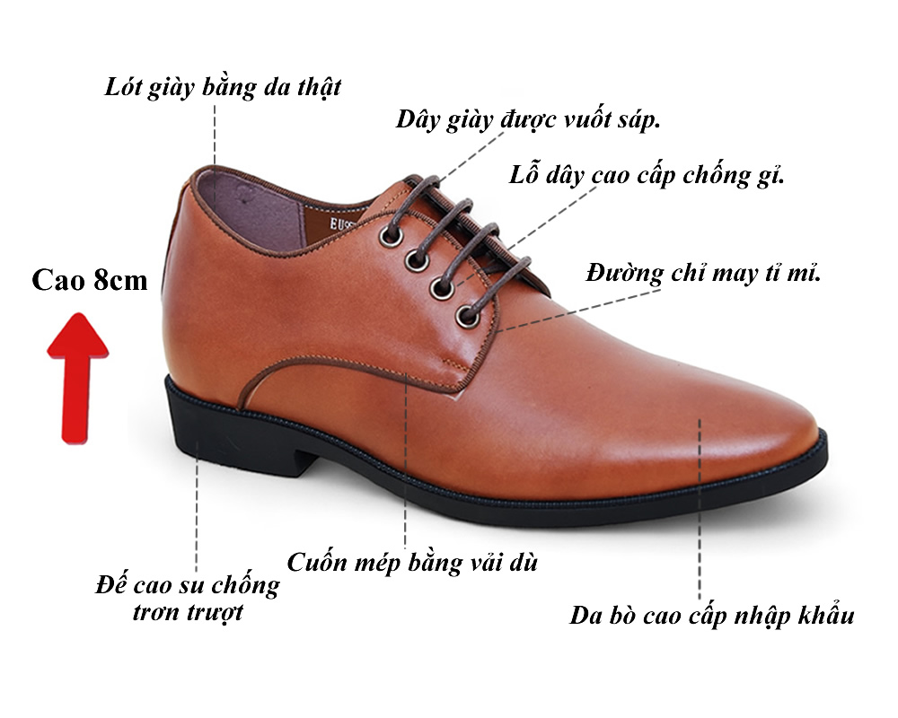 Giày tây nam tăng 8cm chiều cao 4