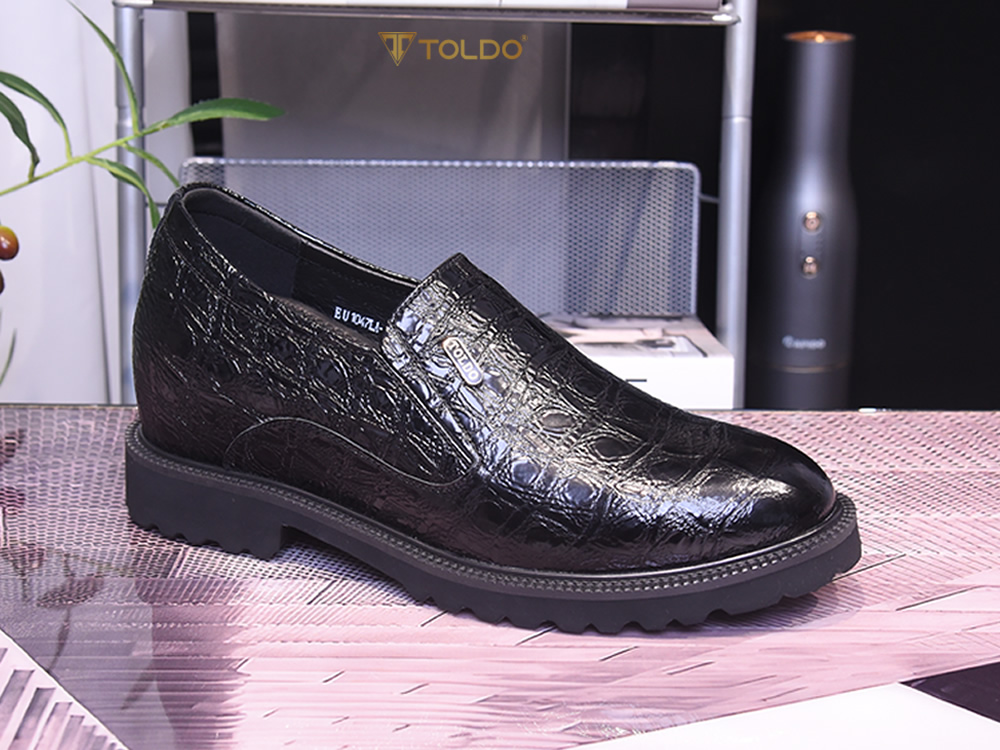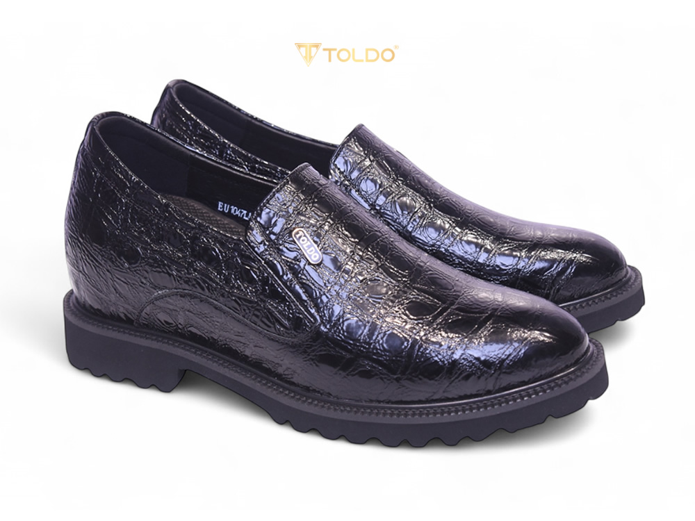 Giày cao 10 da bóng vân cá sấu 10