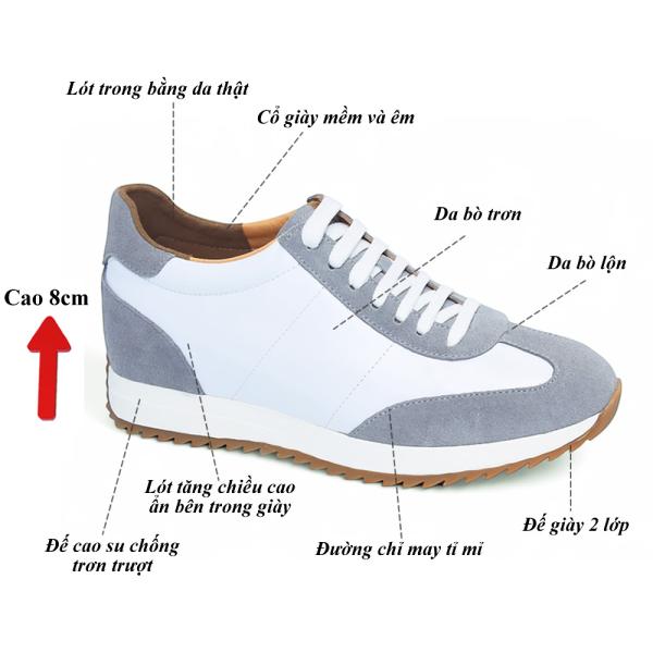 Giày thể thao da thật tăng 8cm