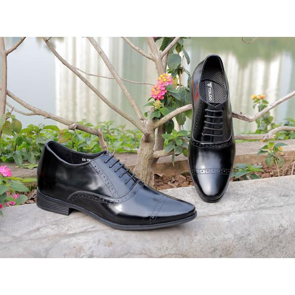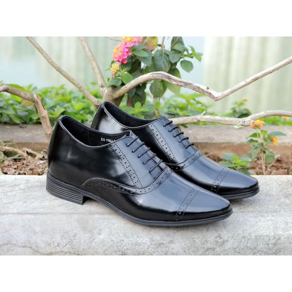 Mẫu giày cao nam Oxford da bóng 7cm mang đến sự kết hợp hài hòa giữa thiết kế sang trọng và cảm giác thoải mái khi sử dụng. Kiểu dáng buộc dây cổ điển giúp tôn lên phong thái lịch thiệp của nam giới hiện đại. Chất liệu da nhập khẩu cao cấp có độ bóng đẹp, mềm chân, không gây cứng hay đau khi mang lâu. Bên trong, lót da thật tạo sự êm ái, thấm hút tốt, thích hợp cho người thường xuyên di chuyển. Thiết kế đế nâng thông minh giúp tăng chiều cao 7cm kín đáo, giúp bạn tự tin hơn trong công việc, các buổi tiệc hay khi dạo phố.