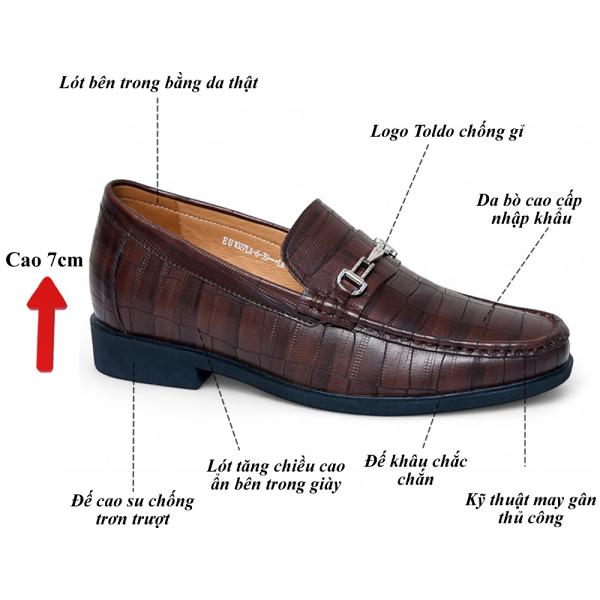 Giày cao nam 7cm vân sá sấu đế khâu 10