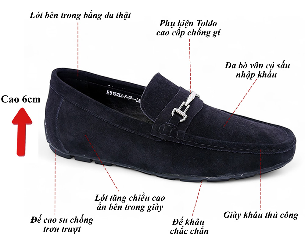 Giày mọi da lộn tăng 6cm da thật 6