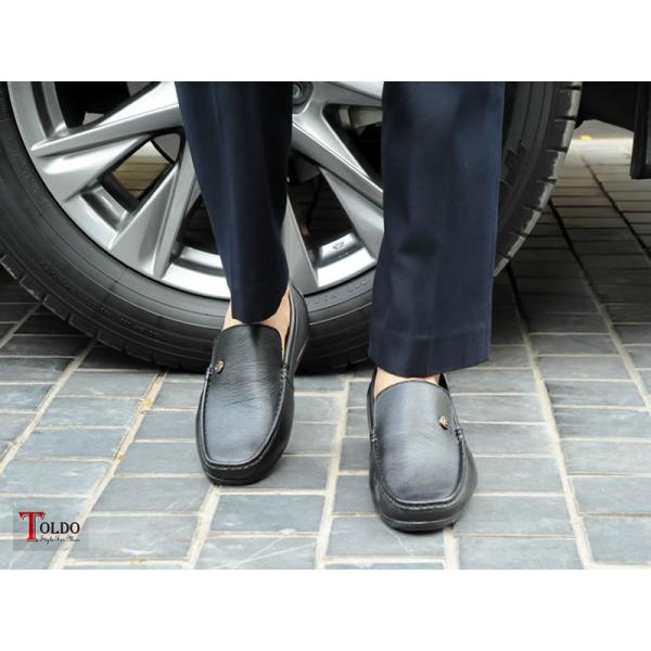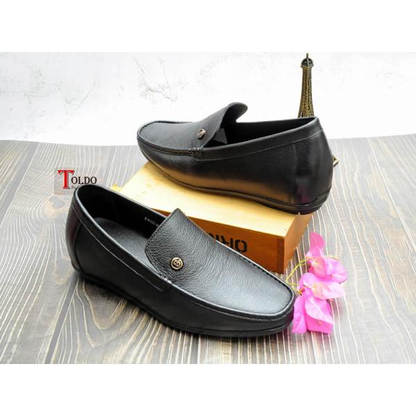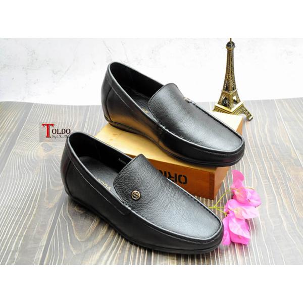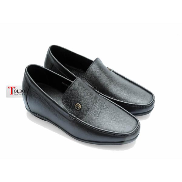 Giày mọi nam cao 6cm với da sần chống nhăn.