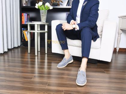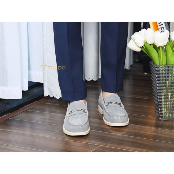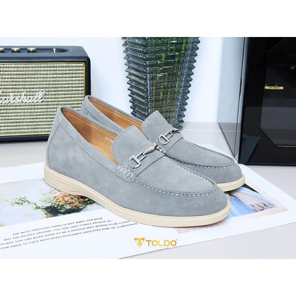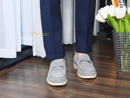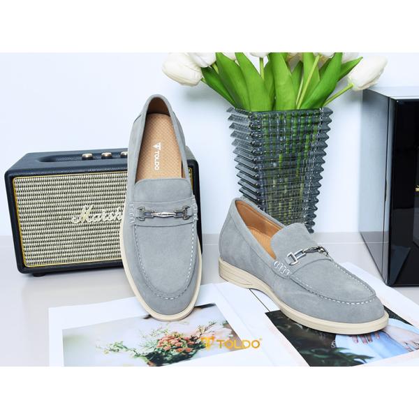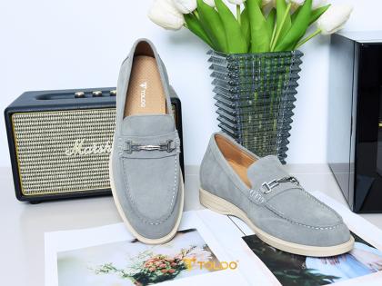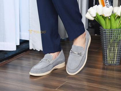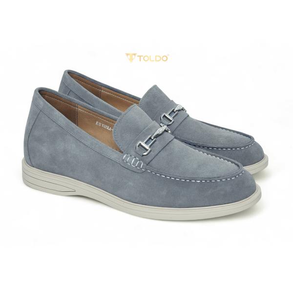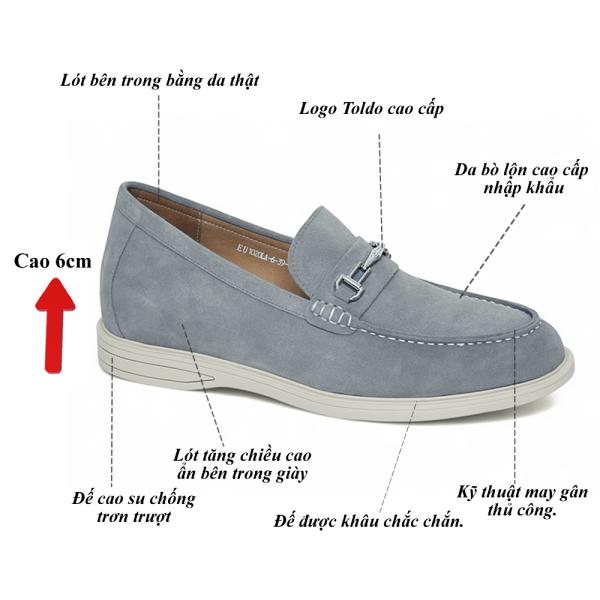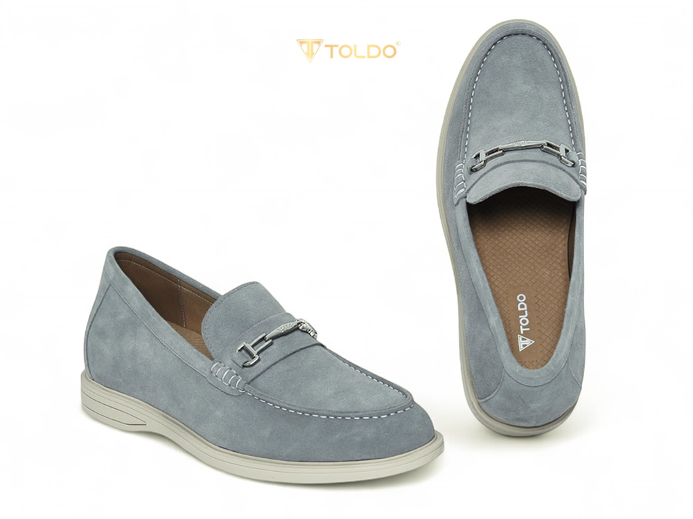 Thể hiện gu thẩm mỹ tinh tế với giày lười CM1020 Xám da lộn. Sắc xám thanh lịch, da bò lộn cao cấp mềm mịn, êm ái suốt ngày. Thiết kế giày cao 6cm kín đáo, đường chỉ may tương phản nổi bật, phụ kiện Toldo chống gỉ tạo điểm nhấn. Đế khâu bền chắc, lý tưởng cho mọi hoạt động từ công việc đến giải trí.