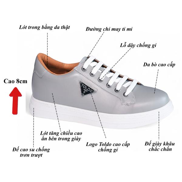 Giày thể thao cao 8cm da thật đế khâu 6